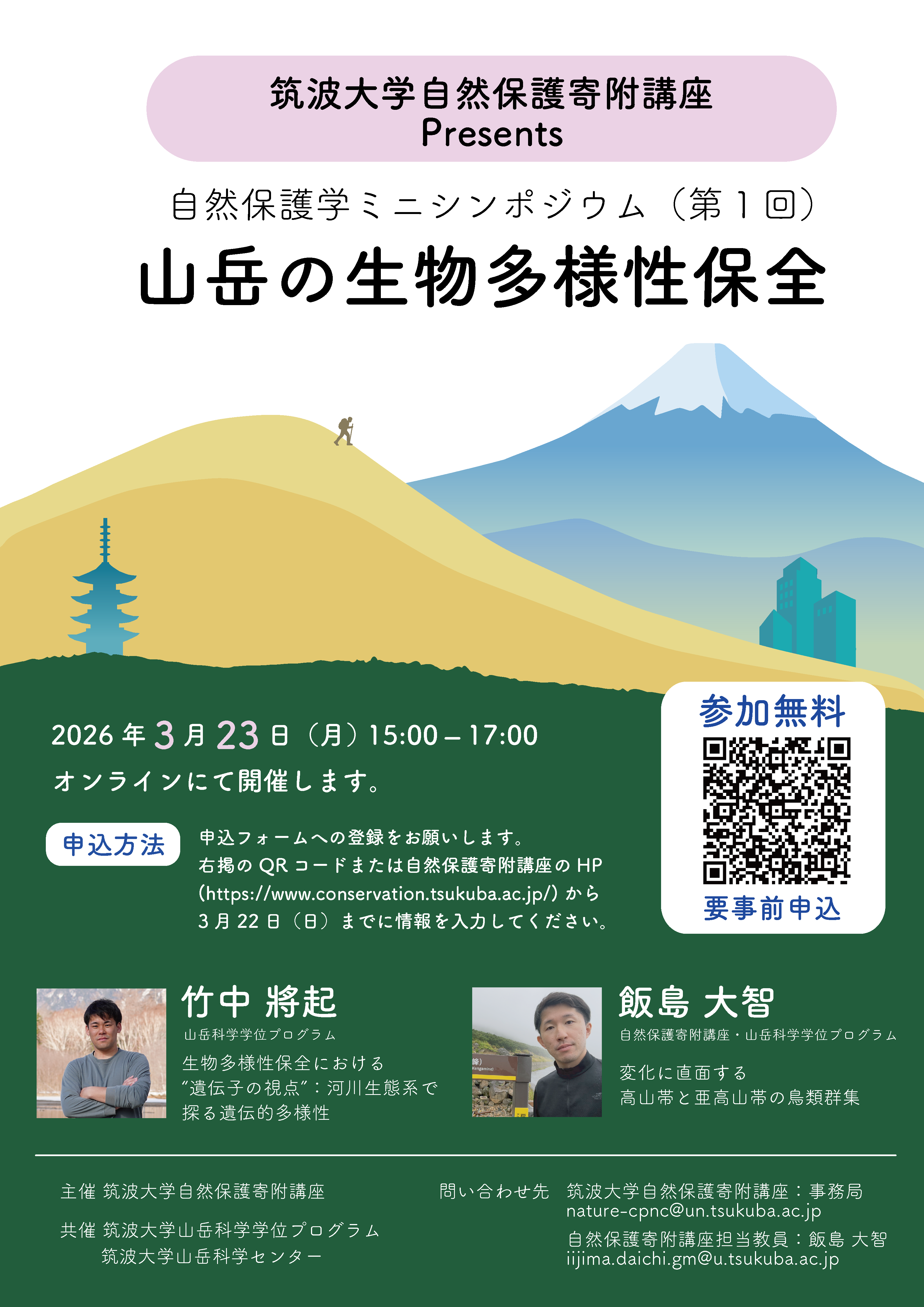 この講座は、⾃然科学と社会科学の両⾯から「⾃然保護とは何か?」を学び、⾃然保護に携わる国内外の様々な機関や企業で活躍する⼈材を育成するための教育プログラムとして、⼈間総合科学研究群および⽣命地球科学研究群の共同で運営されています。