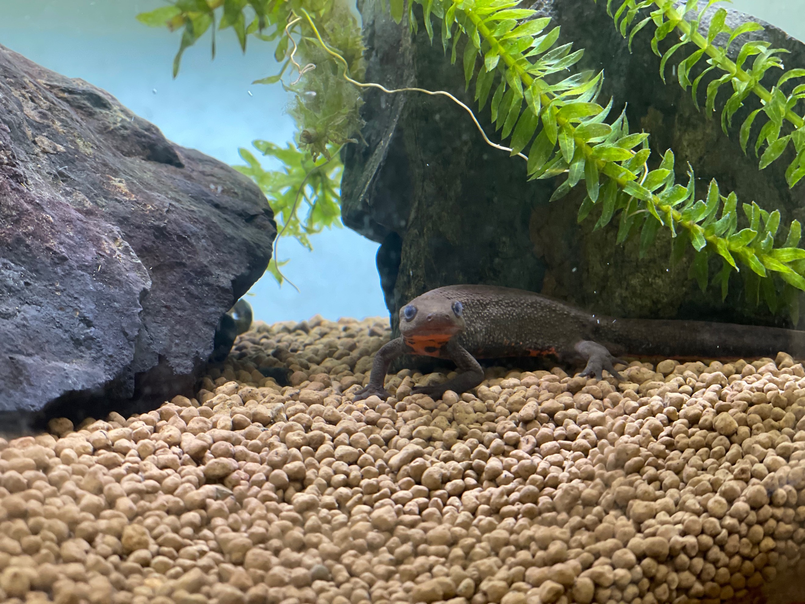 写真3:多摩動物公園で展示されているアカハライモリ。