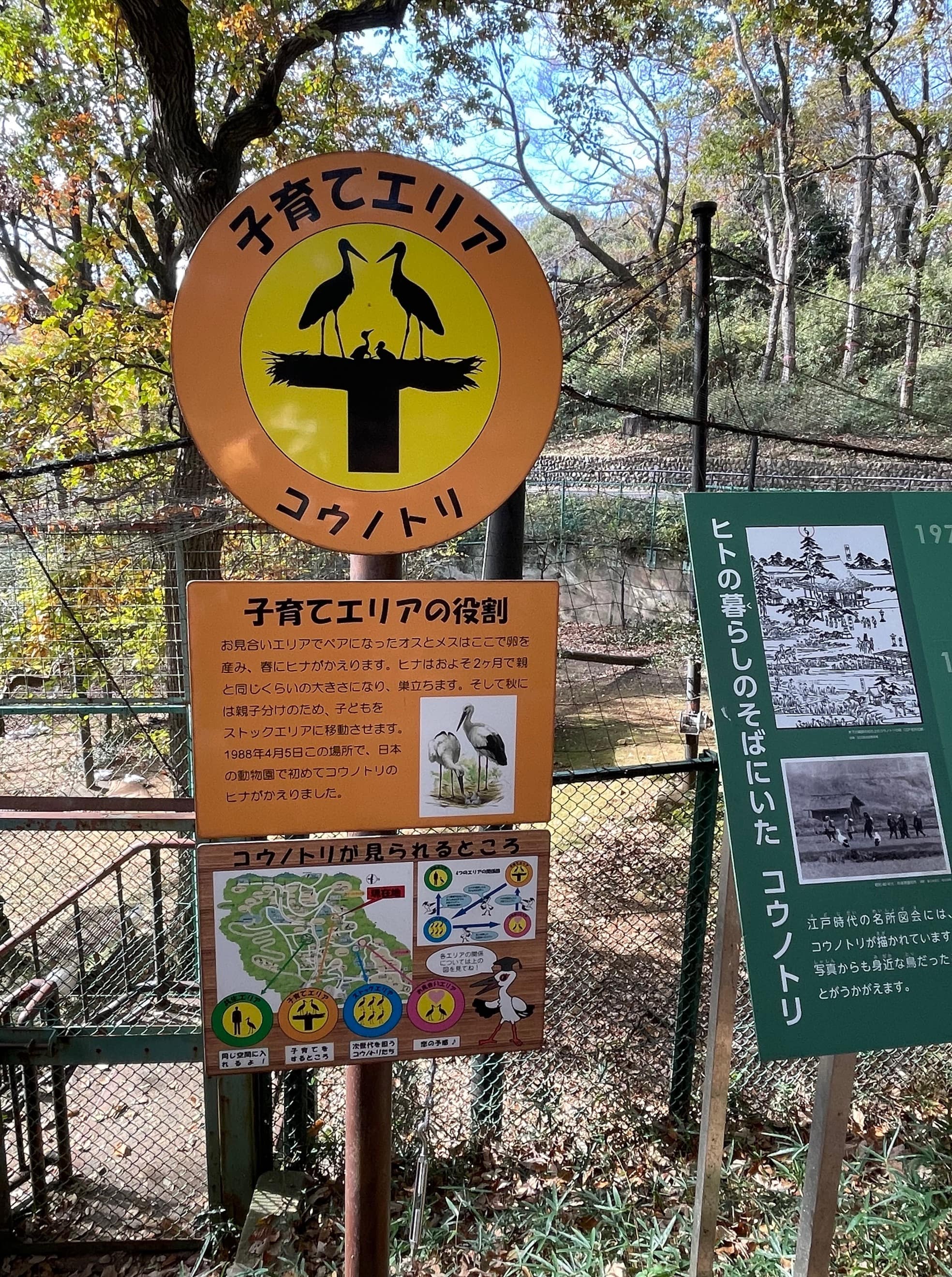 写真2:多摩動物公園ではコウノトリにおける保全活動を、野外展示の形で一般向けに公開している。子育てエリアの他に、繁殖ペアを作るためのお見合いエリア、亜成鳥個体が集められるストックエリア、人がコウノトリと触れ合える共生エリアがある。