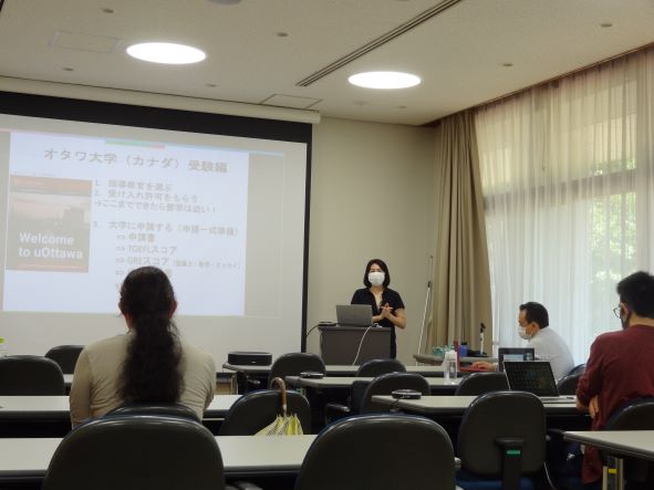 海外留学支援ワークショップを開催しました 2022年6月28日 16時30分 6月27日 ⾃然保護寄附講座海外留学⽀援ワークショップ「自然保護分野での海外留学や国際連携に興味ある?~ワークショップで情報収集しよう~」を開催しました。 自然保護寄附講座留学支援担当の庄⼦晶⼦准教授と飯⽥義彦准教授から海外留学と国連機関での国際連携の取り組みについて話題提供いただき、海外留学の準備からその経験を活かした仕事についてまで参加者と意見交換を行いました。 (写真)当日の様子